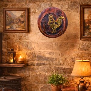 Majestic countryside rooster carved in real wood