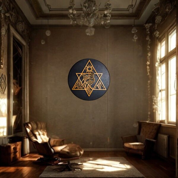 • Hand crafted metal rooster within the divine star