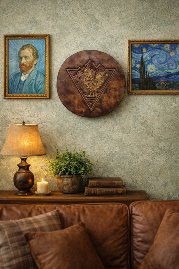 This 14.5 inch diameter wooden art piece comes with all the beauty which wood stands for! Meticulously carved out using a laser cutter and then given layers of polish and gold  overlay work to make the rooster a real harbinger of hope and light!