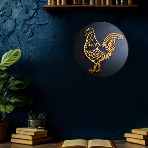 Majestic rooster carved within real wood