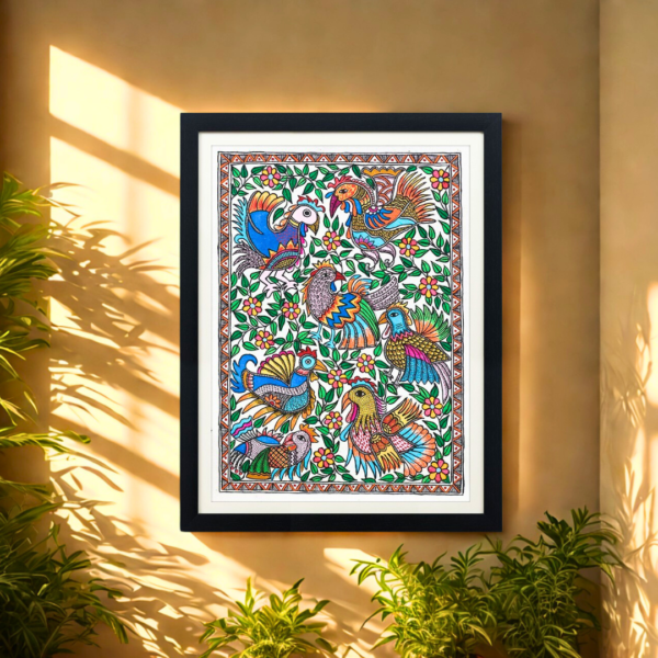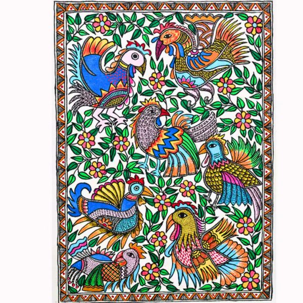HomeShopNEW HOME GIFTSThe rooster parliament in Madhubani art by master artist