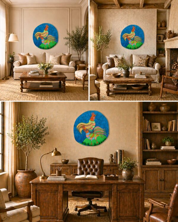We have put together what is perhaps the largest collection of rooster paintings sourced from artists across the country for your home and wall decor. Walk through the gallery here and choose what fills your soul with peace and joy. Along with each painting you will also be bringing in positive energy and good luck charm. Each painting is an amazing new home gift for ones close to you. You can gift them as good luck gifts, good luck charm gifts and good luck gifts for new businesses. They will bring good luck wherever they hang. All our paintings are hand painted by award winning artists. We do not sell any copies or prints .